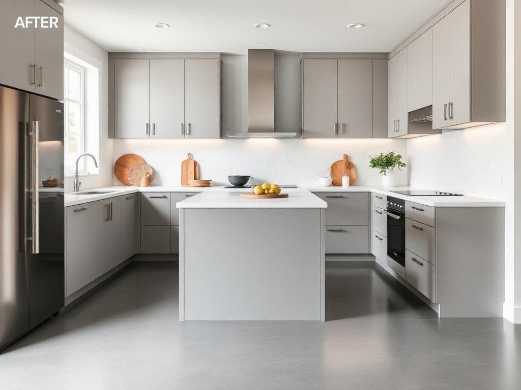 Ett par ville modernisera sitt 90-talskök utan att byta ut de fungerande köksskåpen. Genom microcement på golv och stänkskydd skapade vi ett helt nytt kök till en bråkdel av kostnaden för en totalrenovering.
